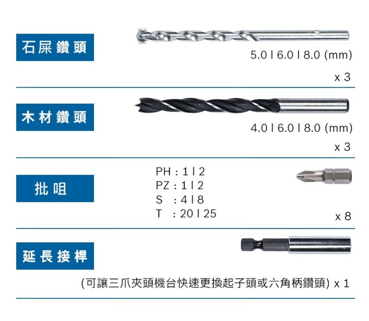 【3支】木材鑽頭 4.0 | 6.0 | 8.0 (mm)