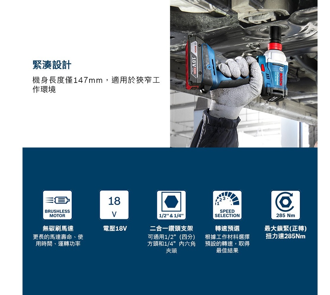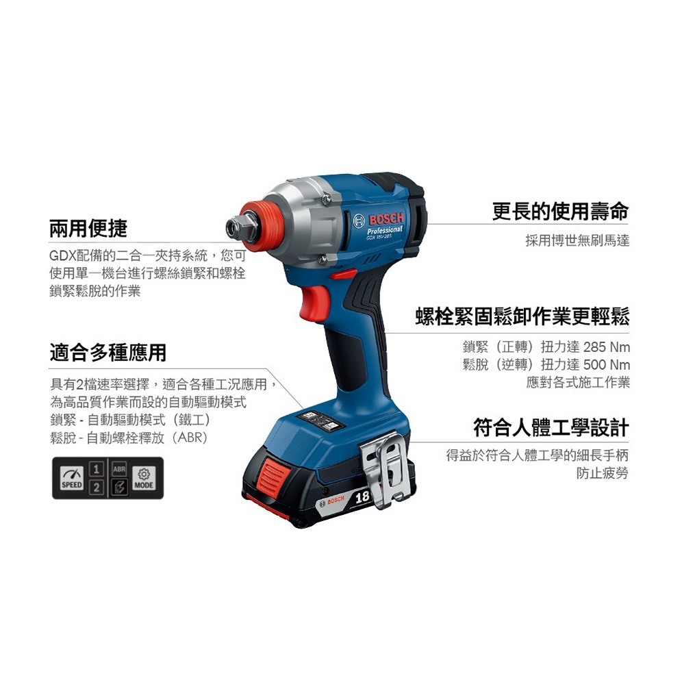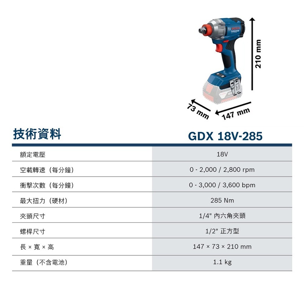 BOSCH 博世 無刷衝擊起子機 /扳手 | 二合一 GDX 18V-285 淨機