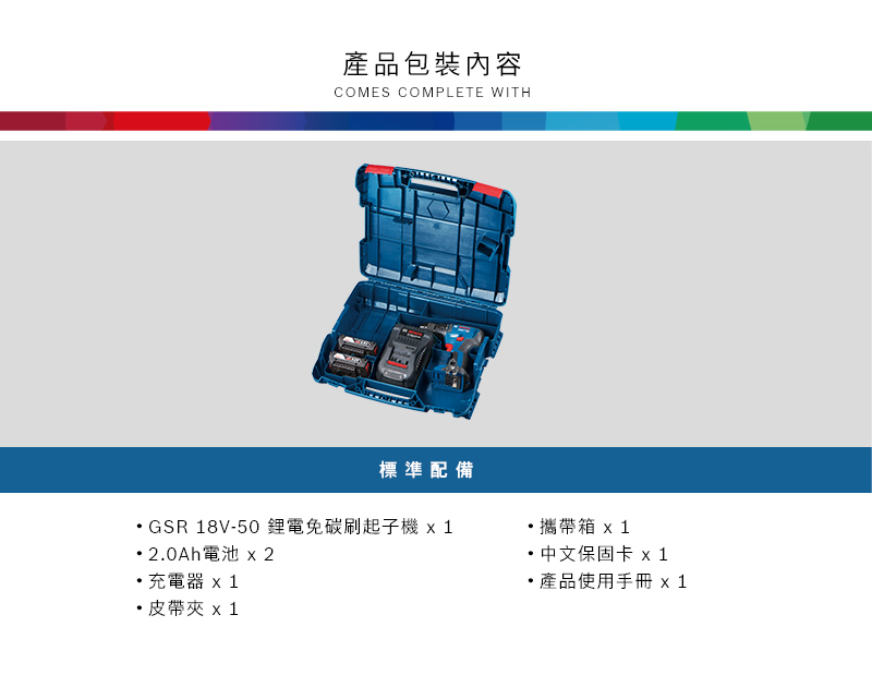 • 配置:18V 2.0AH電池 x 2 ; GAL 18V-40充電器 x 1 ; 工具箱 x 1