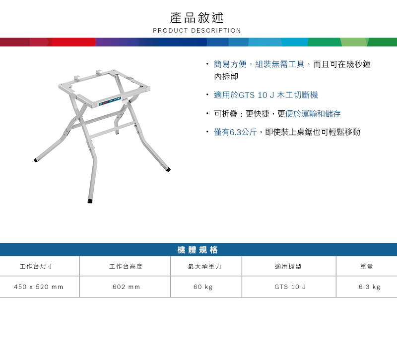 ·可折疊:更快捷,更便於運输和储存,僅有6.3公斤,即使装上桌鋸也可輕鬆移動