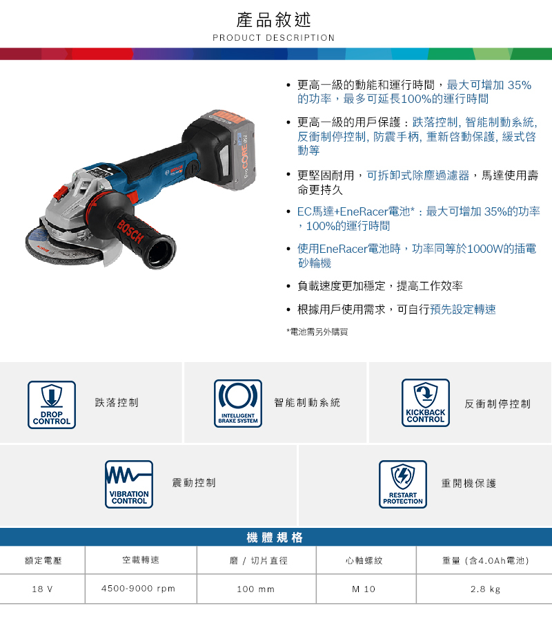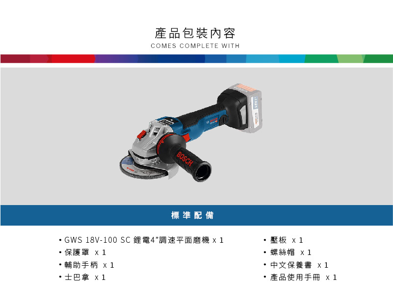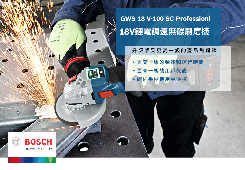 Bosch 博世 鋰電無碳刷磨機 GWS 18V-10 SC Professional