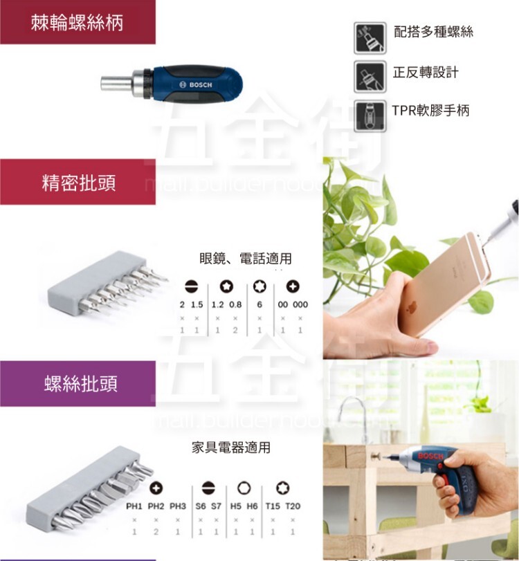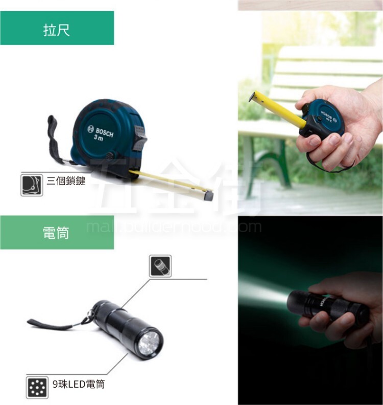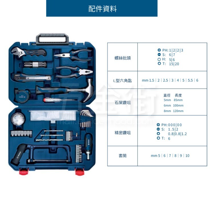 • BOSCH 多功能手工具套裝108件套裝 內共含108個各式手工具以及電動工具配件;
