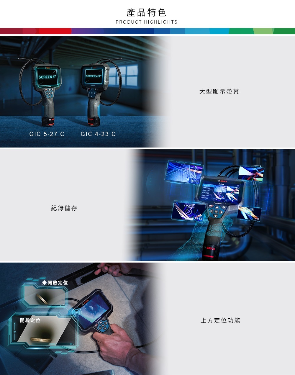 ⦁ GIC 5-27 C 專業偵測攝影機為暖通空調/水管工、電工或汽車修理工帶來全新的便利體驗