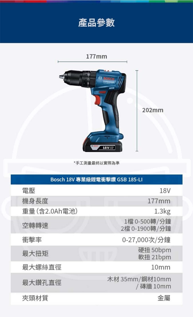• BOSCH GSB 185-LI 無刷衝擊電鑽 x 1pc