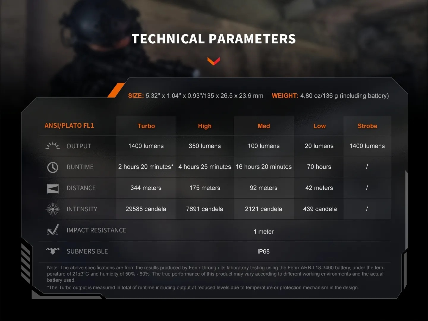 標準裝連 Fenix 18650 3400mAh 電池, 電筒套