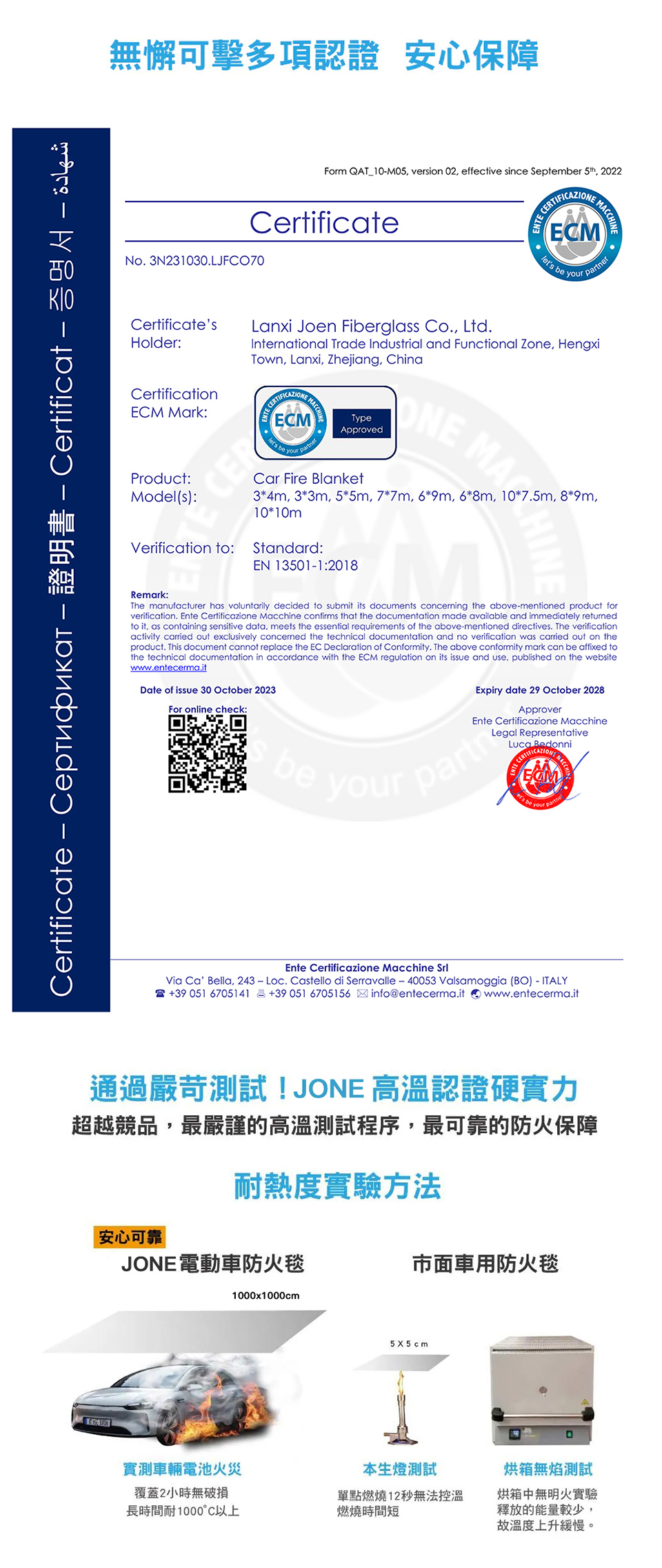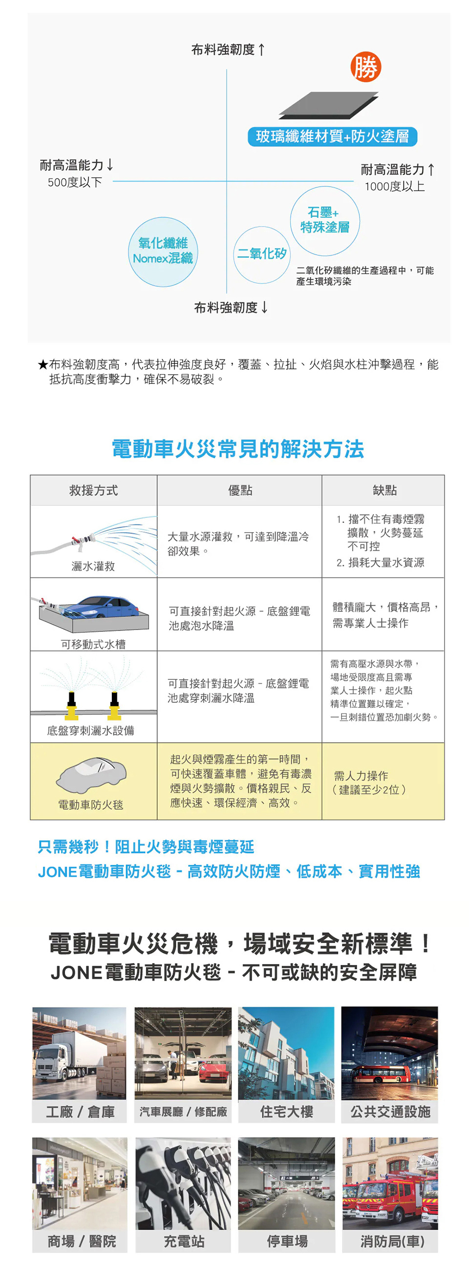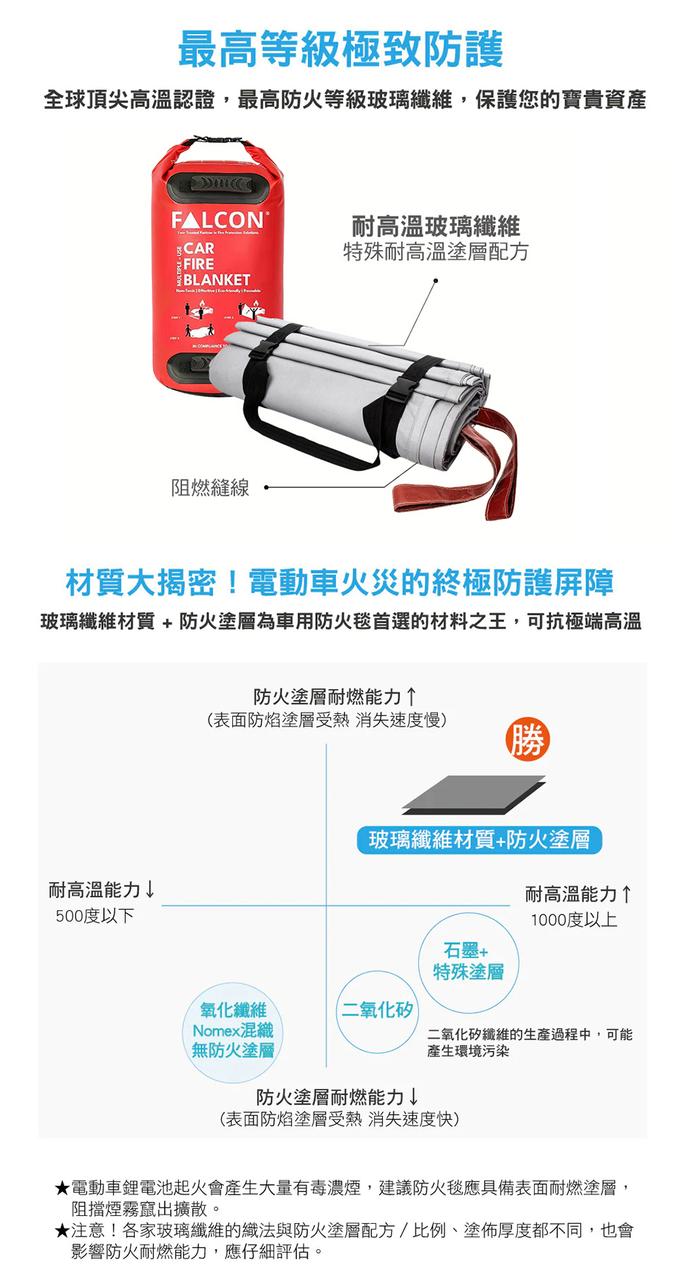 可承受高達 1000°C / 550°C 高溫環境,有效隔絕熱源及電流,特別適合電動車及鋰電池火災應用,安全可靠。