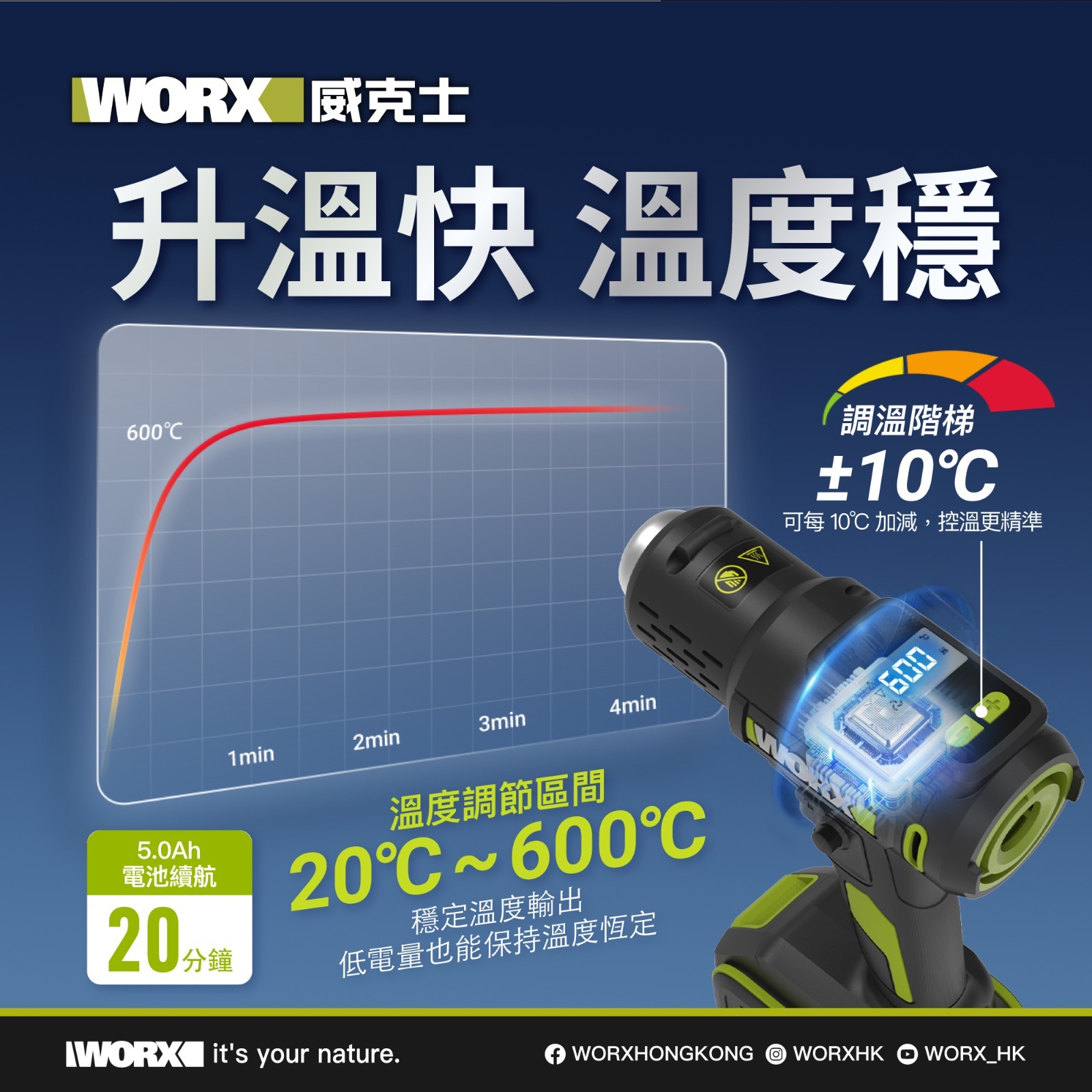 溫度可調節 :20ºC-600º